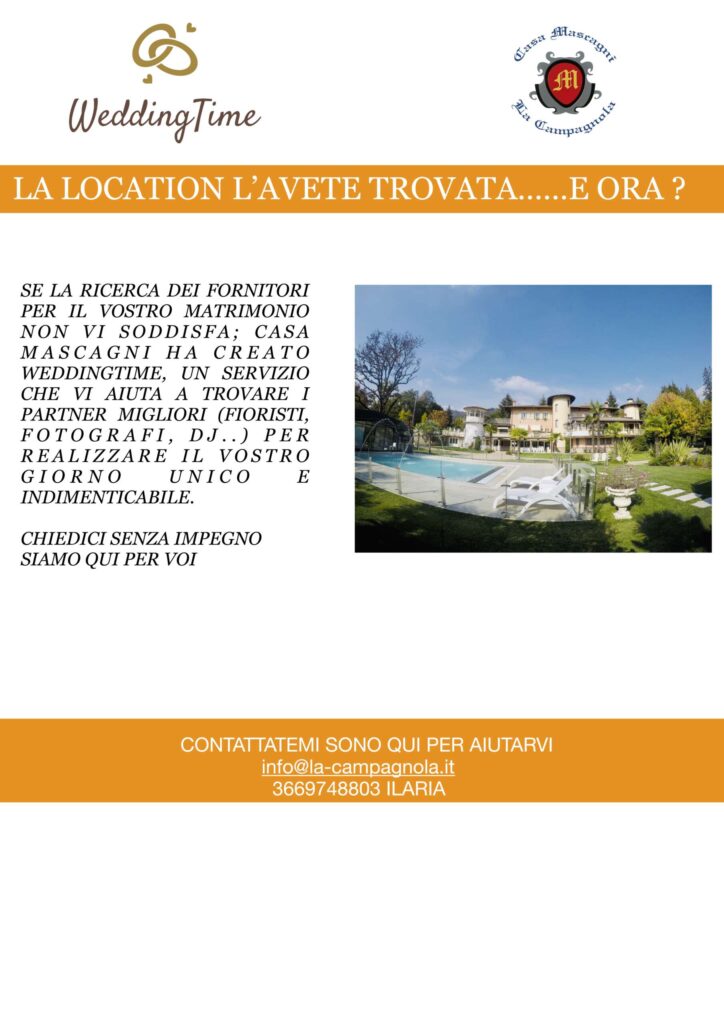Wedding Time è il servizio di consulenza di Casa Mascagni, Rivolto a tutti gli sposi che vogliono organizzare le nozze senza preoccupazioni, Il servizio è